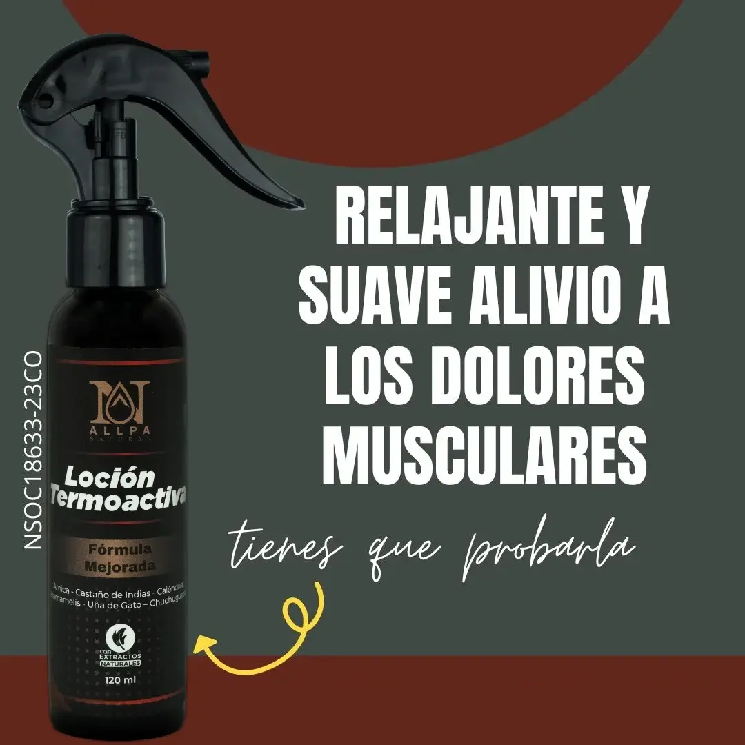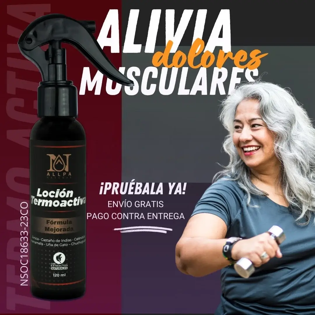 La Loción Termoactiva ofrece alivio inmediato a dolores musculares gracias a su efecto calor que actúa desde la primera aplicación. Ideal para deportistas y personas con sobrecarga física, reduce la inflamación y relaja los músculos tensos.